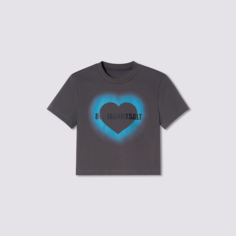 SALT.P可颜 2026夏季新款碳灰渐变爱心短款T恤AC36260040