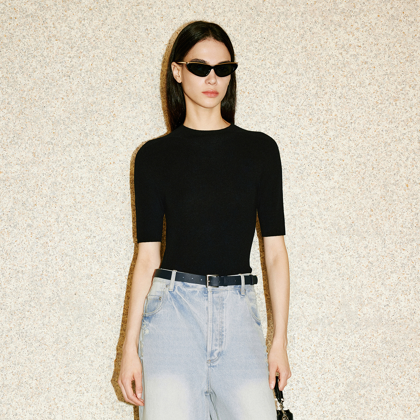 COVERINS2026春新款百搭基础圆领修身羊毛短袖针织CC36106260