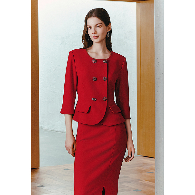 OBBLIGATO奥丽嘉朵2026春季新款日本进口三醋酸红色钉珠收腰上衣1C36170060