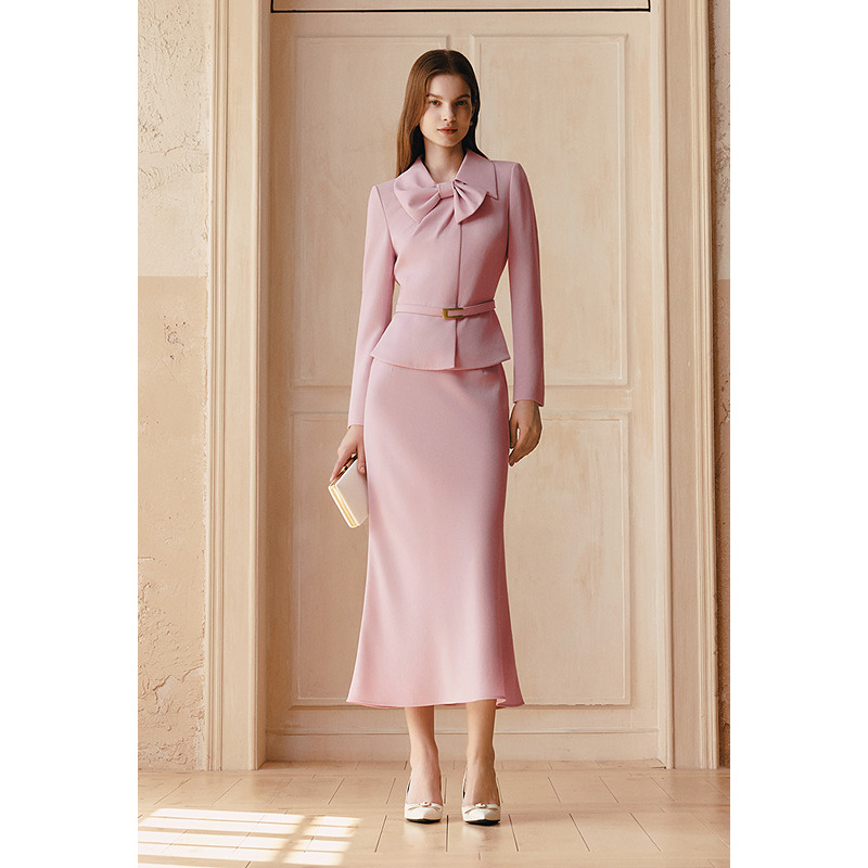 OBBLIGATO奥丽嘉朵2026春季新款醋酸混纺斜裁浅粉色鱼尾半身裙1C66150060