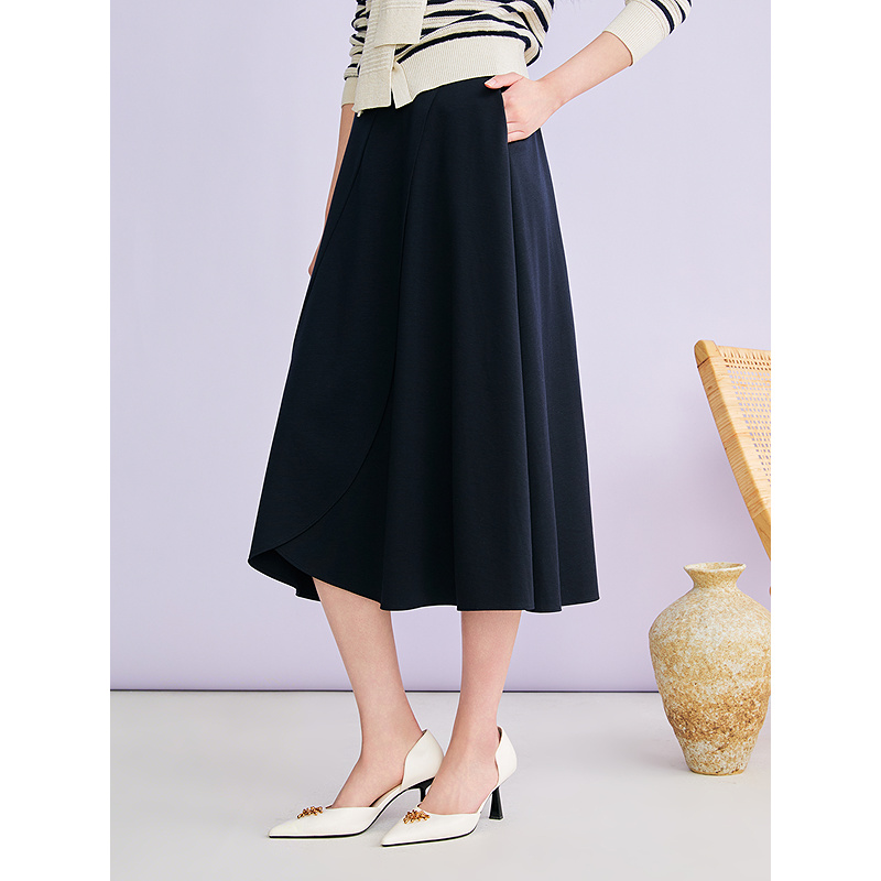 YINER音儿2026春季新款时尚莱赛尔羊毛混纺不规则波浪边A型半身裙8C36150330