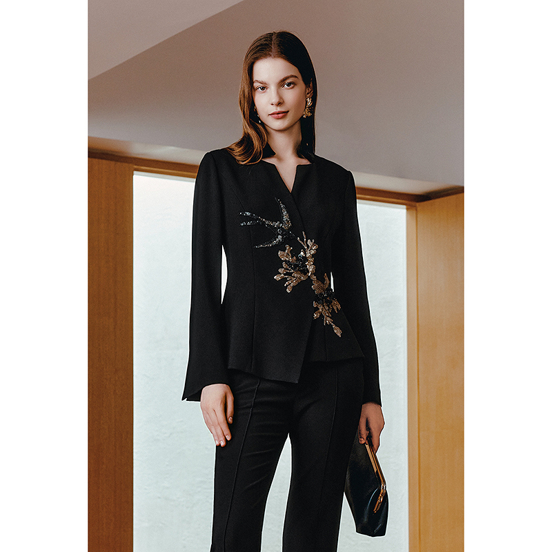 OBBLIGATO奥丽嘉朵2026春季新款三醋酸手工钉珠叠绣立领廓形西装1C36110070