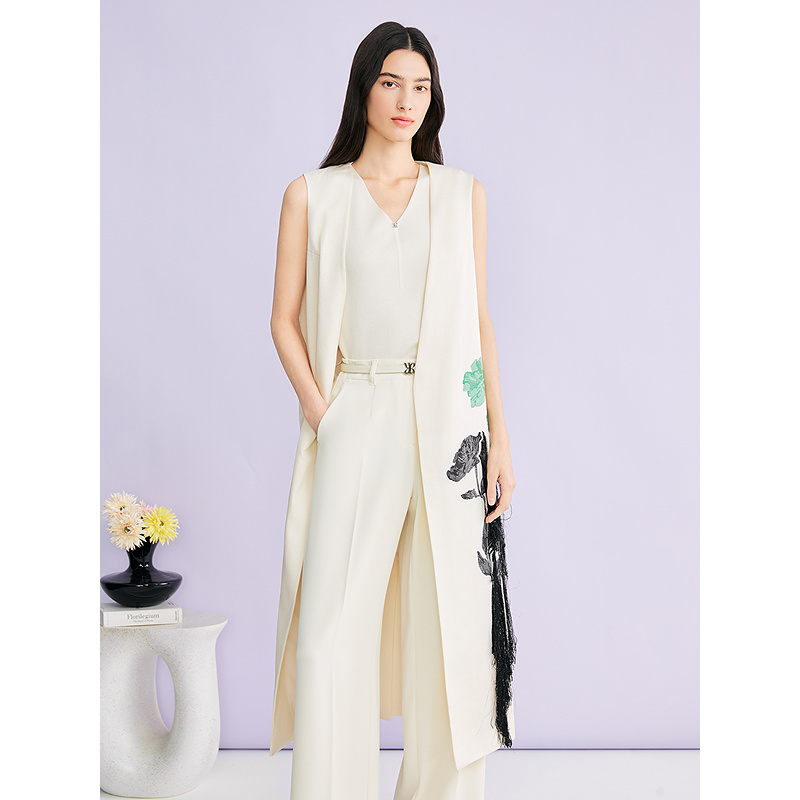 YINER音儿2026夏季新款优雅知性V领重工提花流苏装饰斜纹肌理马甲8C36201280