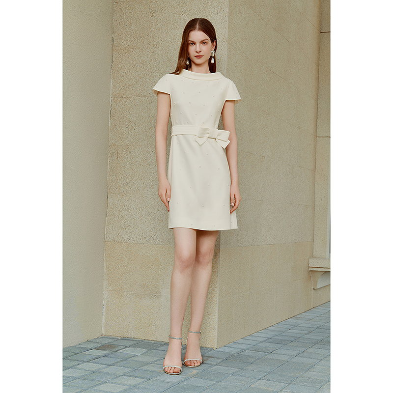 OBBLIGATO奥丽嘉朵2026夏季新款手工钉珠蝴蝶结腰带优雅连衣裙1C66205180