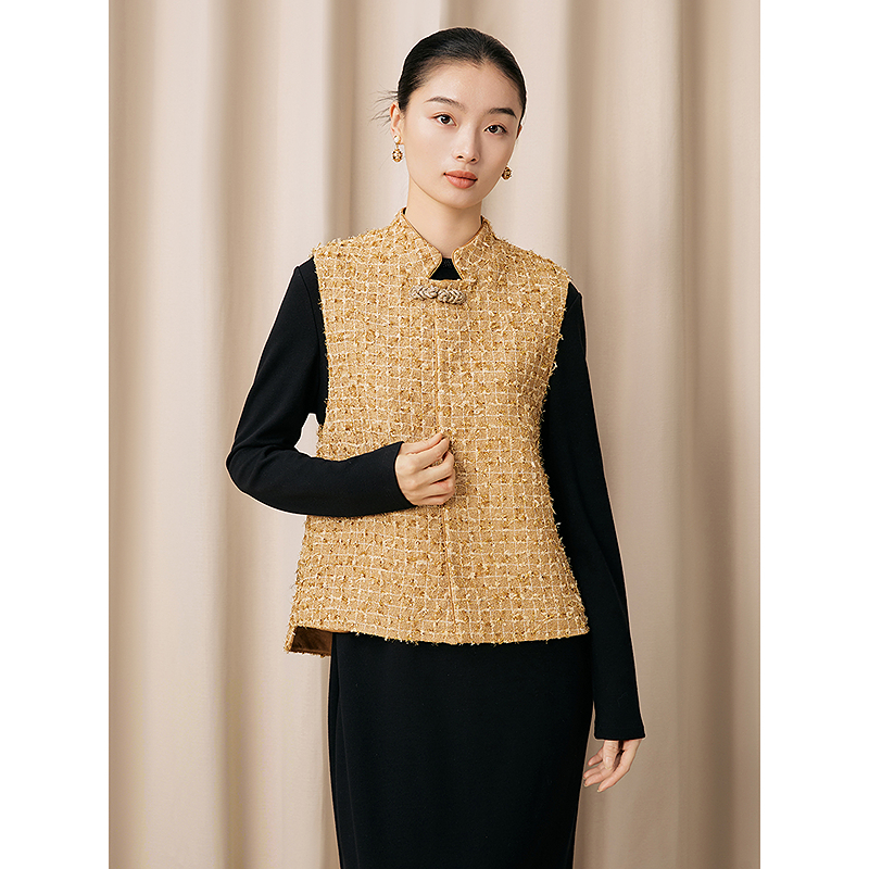 【鎏金织梦】Song of Song歌中歌2026春季新款金属丝花纱马甲外套5C36101190