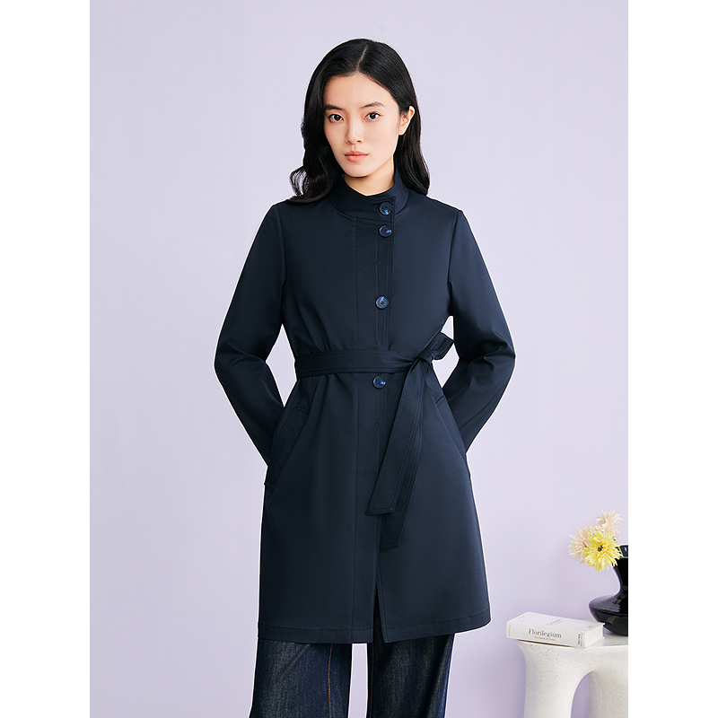 YINER音儿专选2026春季新款时尚通勤翻立两用领系带收腰风衣外套8C66107036