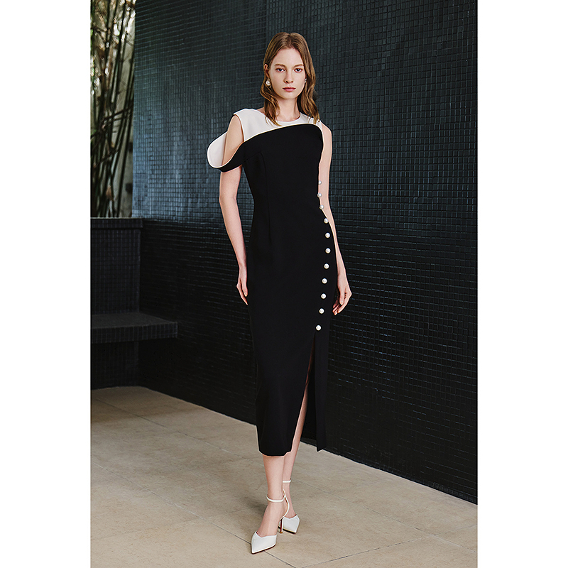 OBBLIGATO奥丽嘉朵2026夏季新款三醋酸黑白拼接多场合收腰连衣裙1C36205280