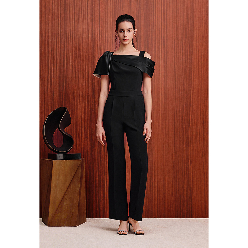 OBBLIGATO奥丽嘉朵2026夏季新款三醋酸拼接蝴蝶结高腰显瘦连体裤1C36202040