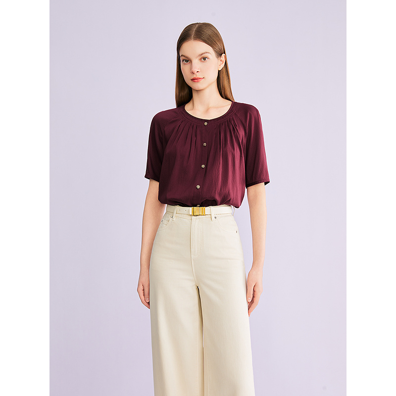 YINER音儿专选2026夏季新款优雅圆领莫代尔桑蚕丝混纺衬衫上衣8C66230016