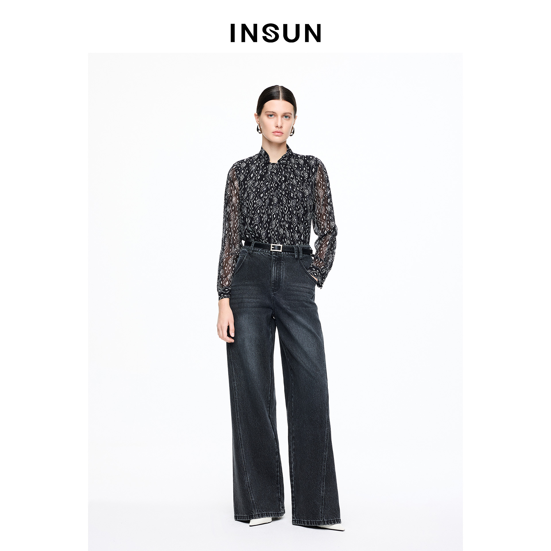 INSUN恩裳专选2026春季印花轻盈100%桑蚕丝长袖衬衫9C66170110