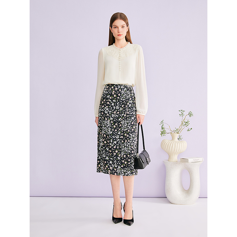 YINER音儿专选2026夏季新款时尚优雅碎花印花捏褶显瘦A字半身裙8C66250006