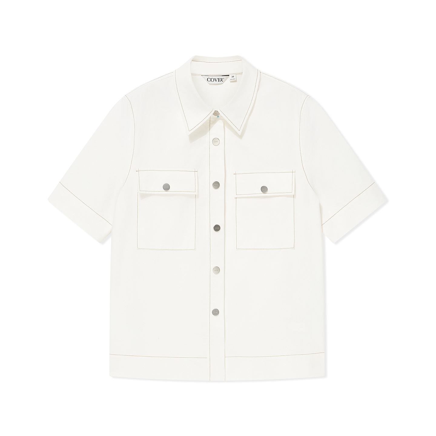 COVERINS2026夏季新款白色100棉工装风短袖衬衫CC36230280