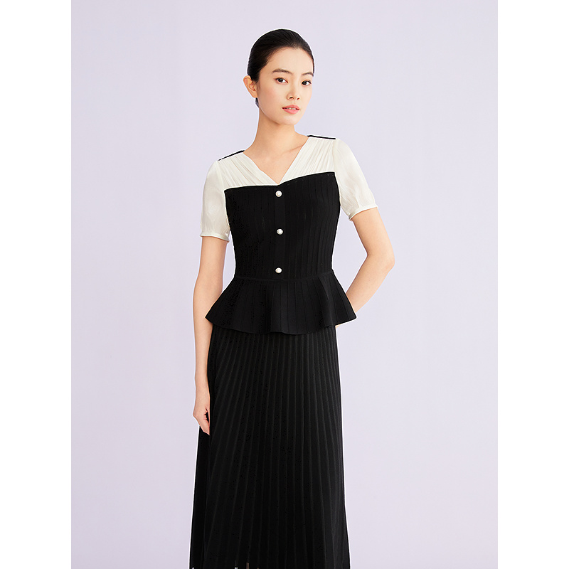 YINER音儿专选2026夏季新款时尚优雅撞色赫本风V领针梭拼针织衫8C66206206