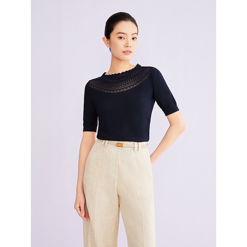 YINER音儿专选2026夏季新款时尚优雅钩花镂空肌理圆领H型针织衫8C66206226