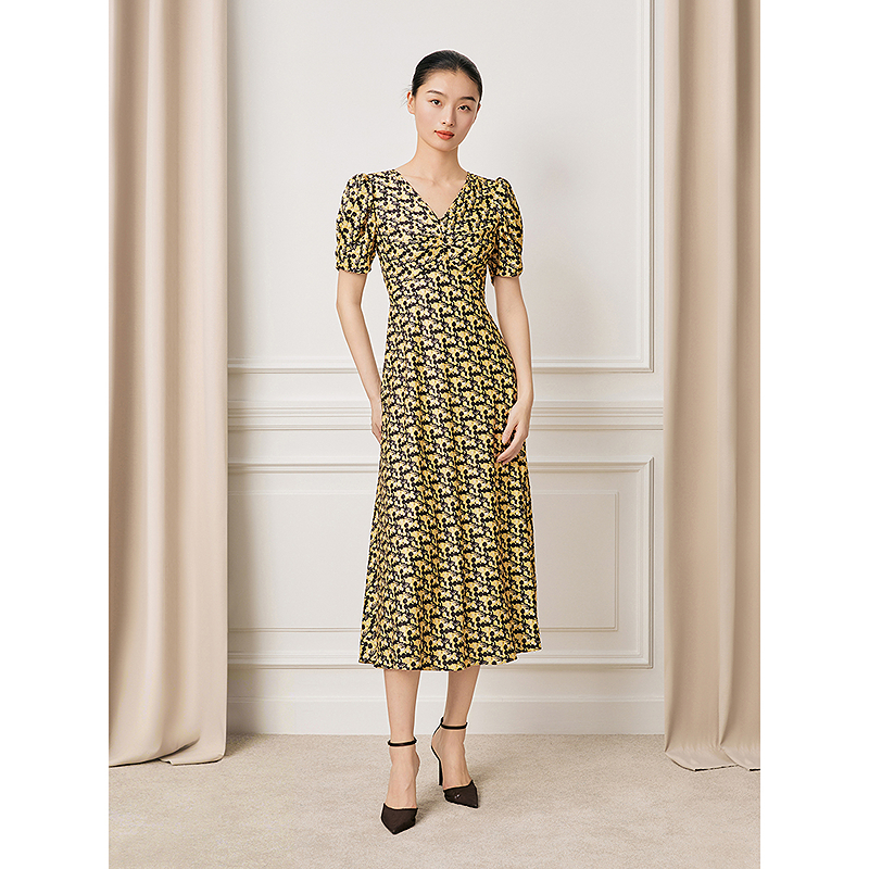 Song of Song歌中歌2026夏季新款度假风泡泡袖复古提花碎花连衣裙5C66205066
