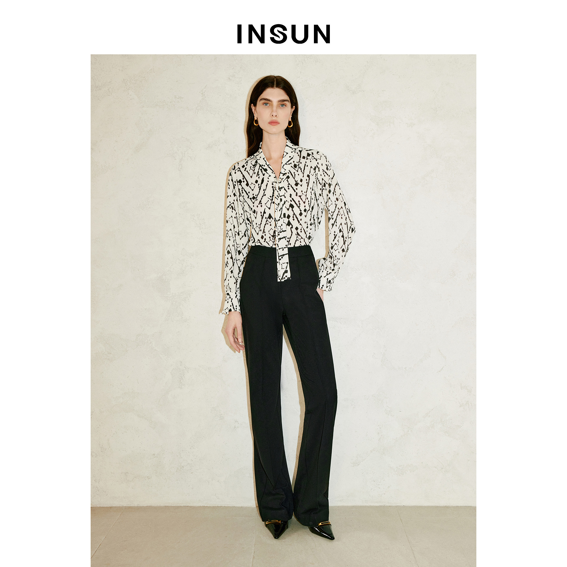 INSUN恩裳专选2026春季高腰修身显瘦四面弹微喇叭西裤9C66120180