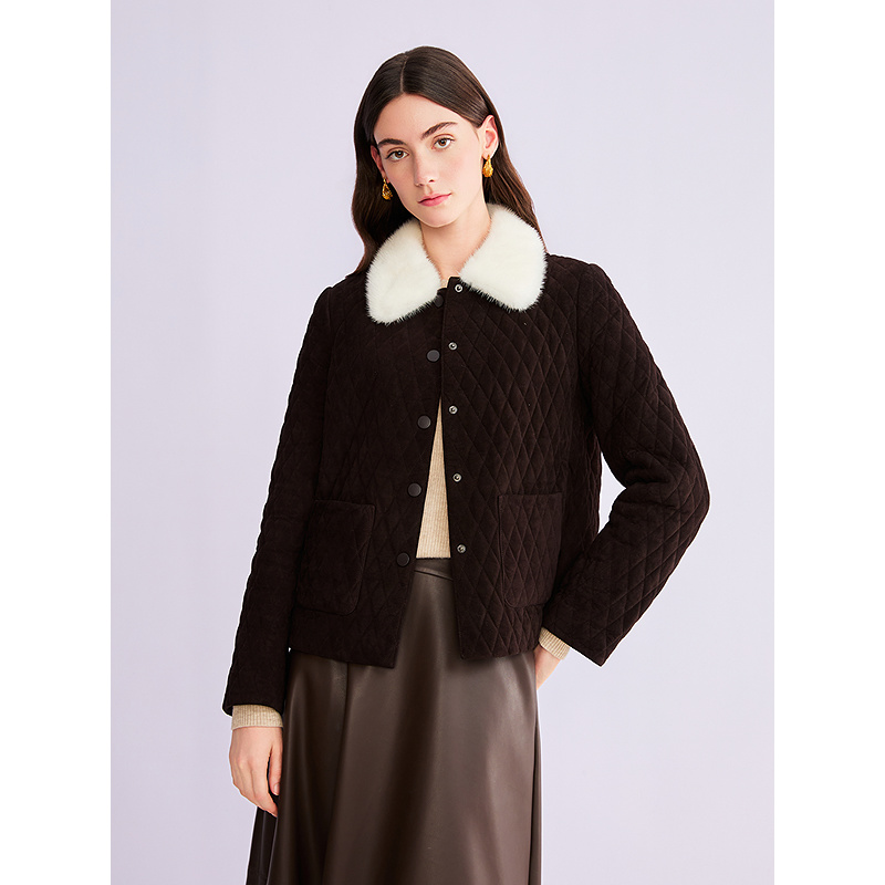 YINER音儿专选2026春季新款水貂毛皮翻领绵羊毛骆驼绒混纺皮棉服8C66109156