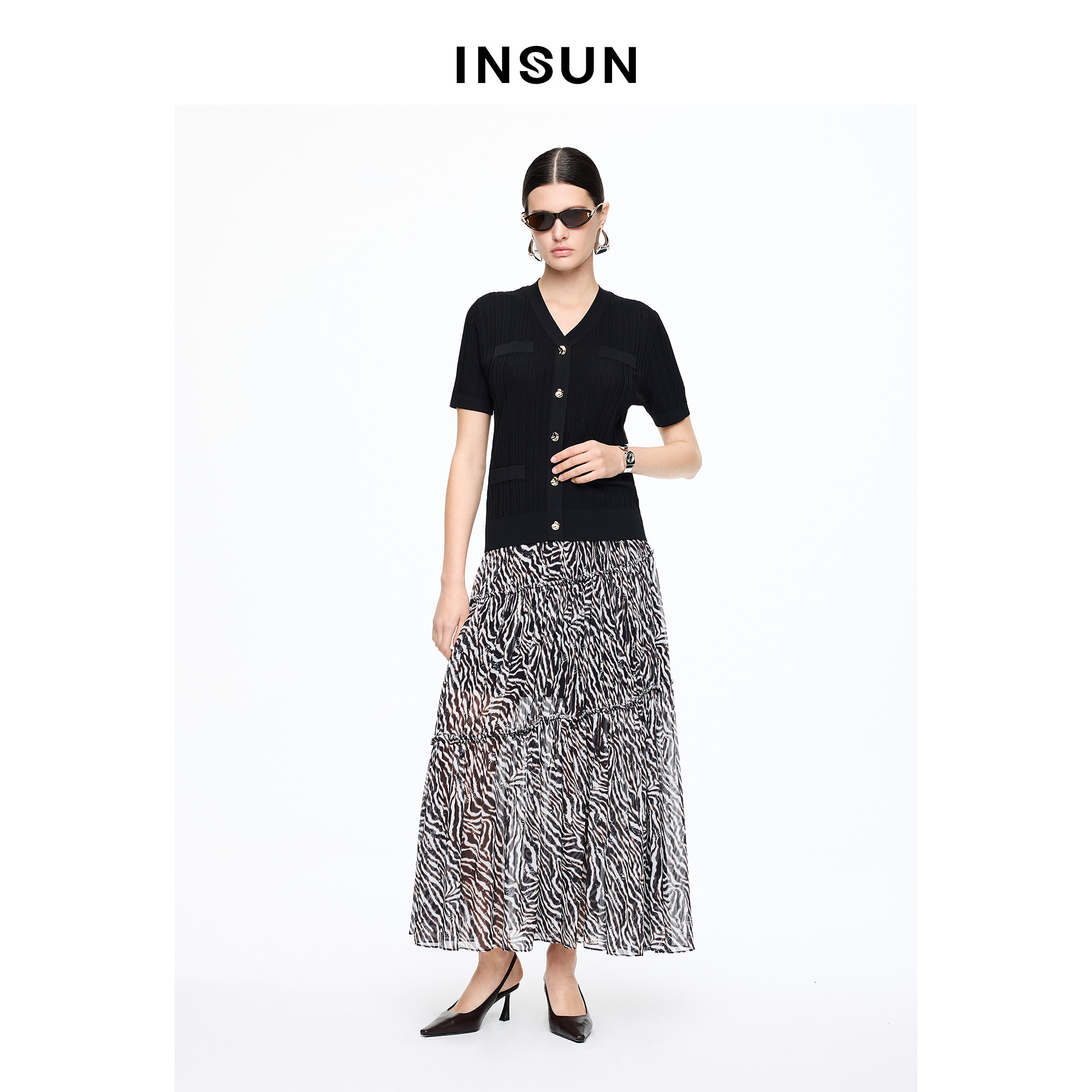 INSUN恩裳专选2026夏季V领小香风显瘦短袖针织衫9C66206070