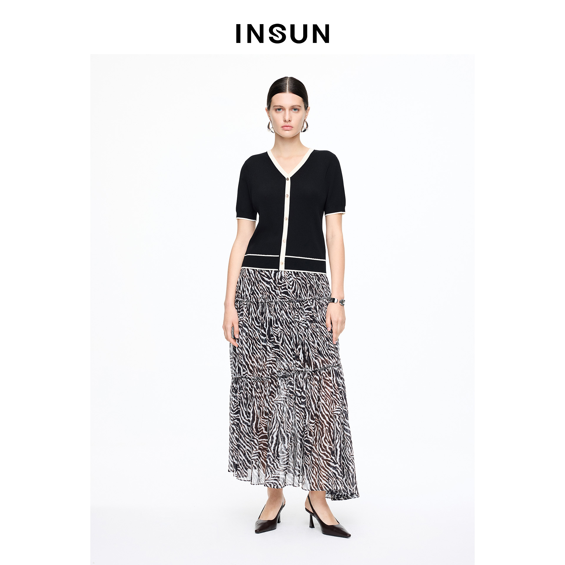 INSUN恩裳专选2026夏季V领显瘦肌理感醋纤短袖针织衫9C66206100