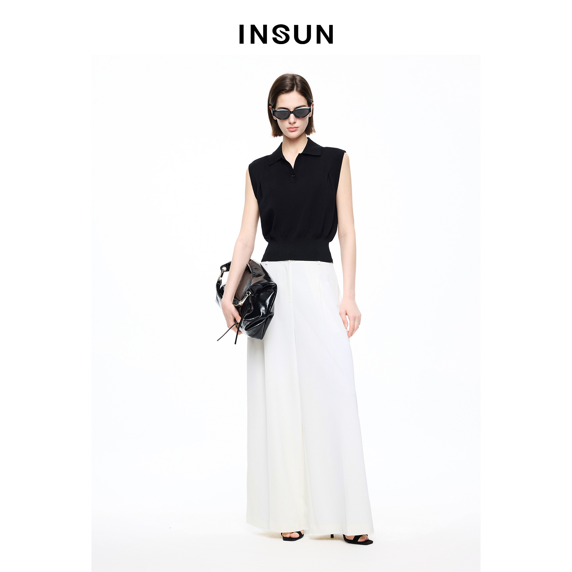 INSUN恩裳专选2026夏季休闲微落肩POLO领醋酸棉针织衫9C66206140