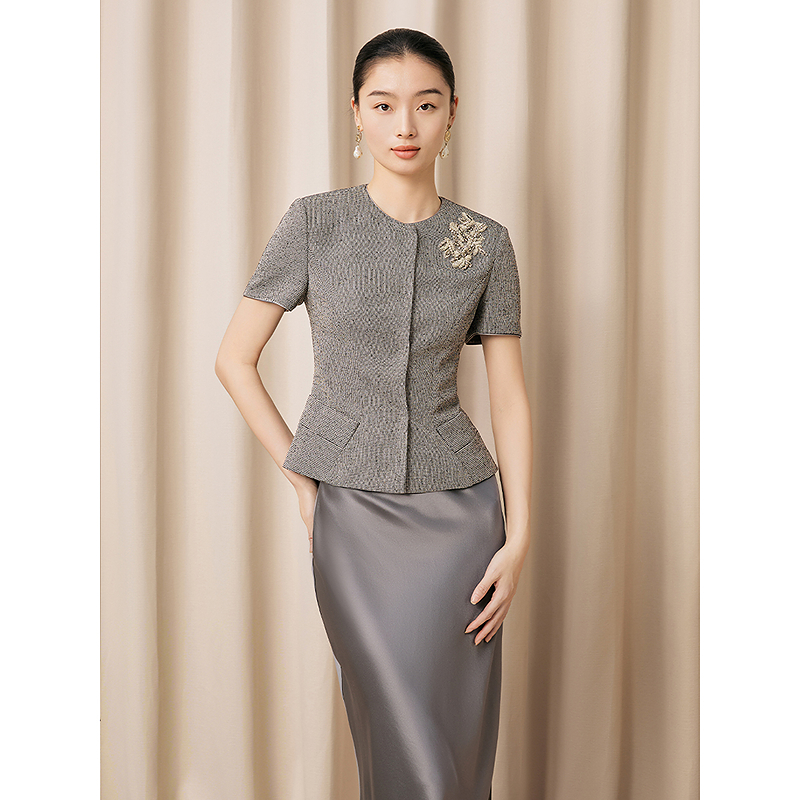 【绞综工艺】Song of Song歌中歌2026夏季新款奢感收腰钉珠外套5C36210150