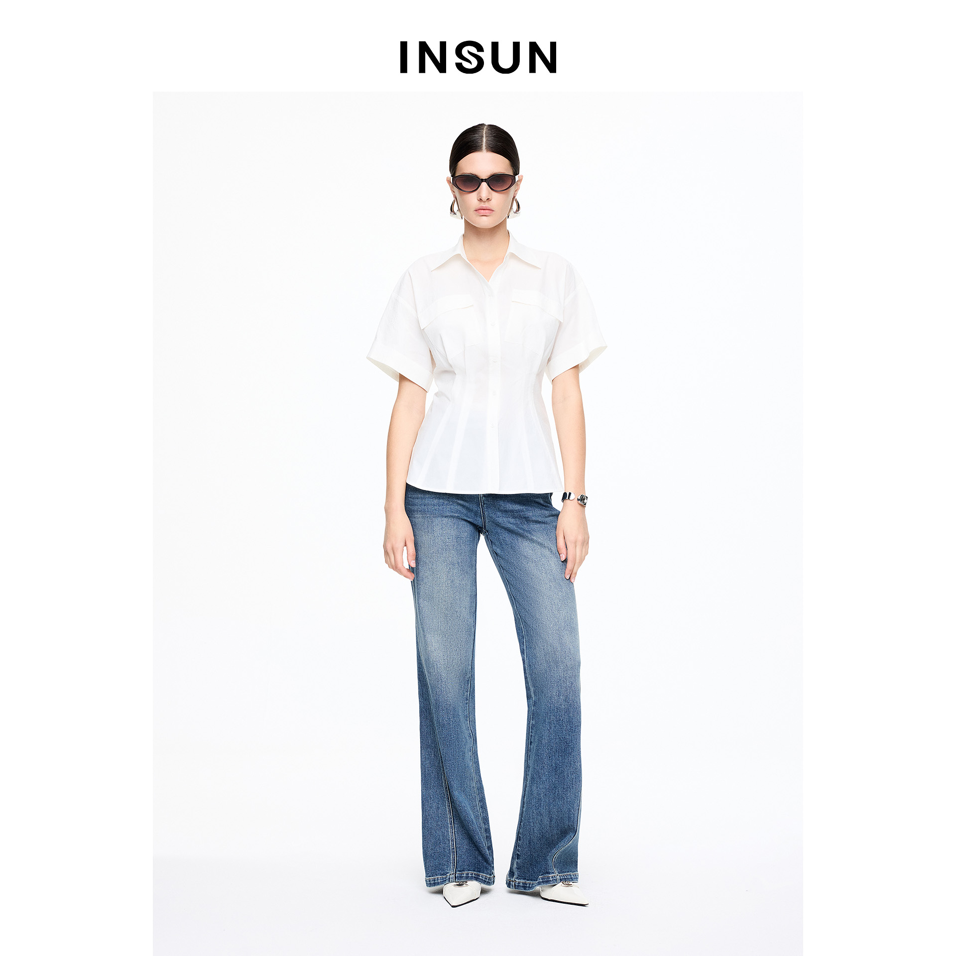 INSUN恩裳专选2026夏季V领百搭收腰100%棉衬衫9C66230010