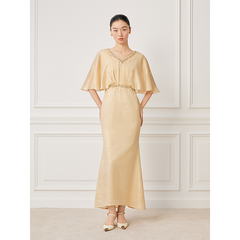 Song of Song歌中歌2026夏季新款浅金鎏光鱼尾·桑蚕丝钻饰礼服连衣裙5C36205670