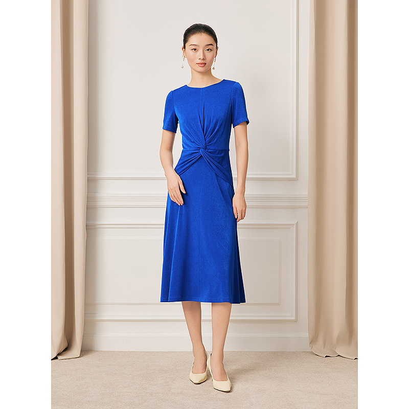 Song of Song歌中歌2026夏新款纽结设计宝蓝色醋酸针织连衣裙5C66205116