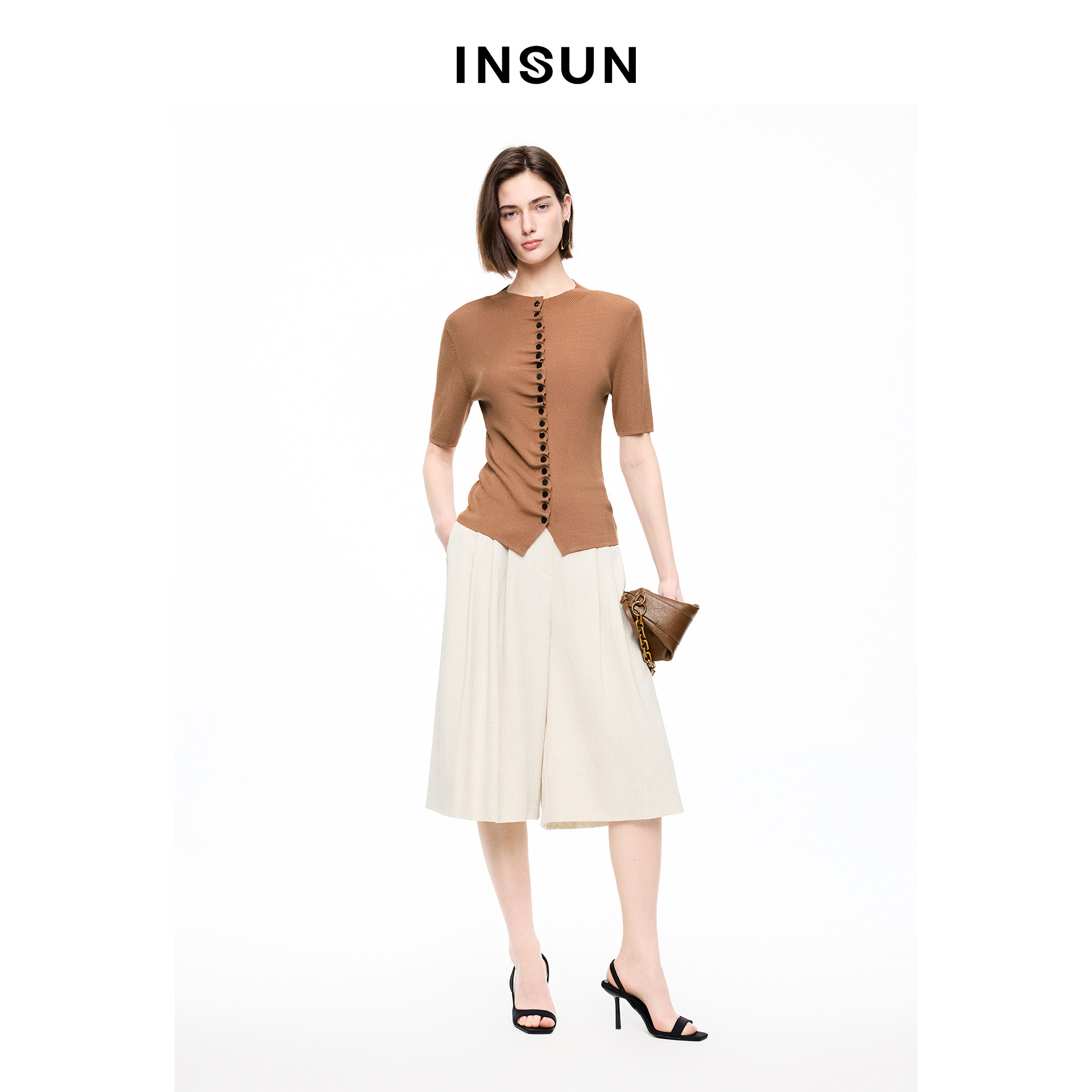 INSUN恩裳专选2026夏季修身显瘦肌理感醋纤裙裤9C66220130
