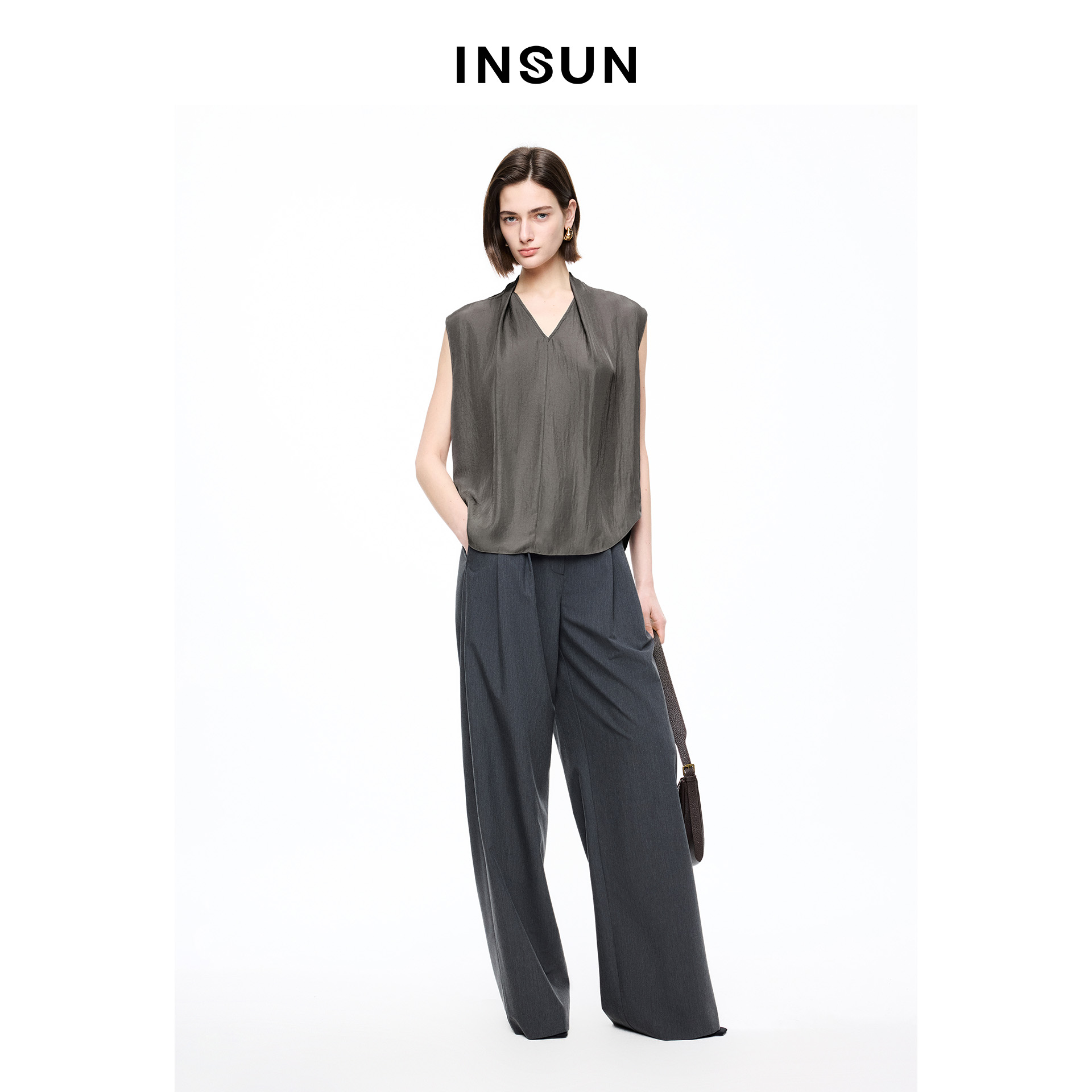 INSUN恩裳专选2026夏季V领连肩袖易打理显瘦100%醋纤背心9C66204010