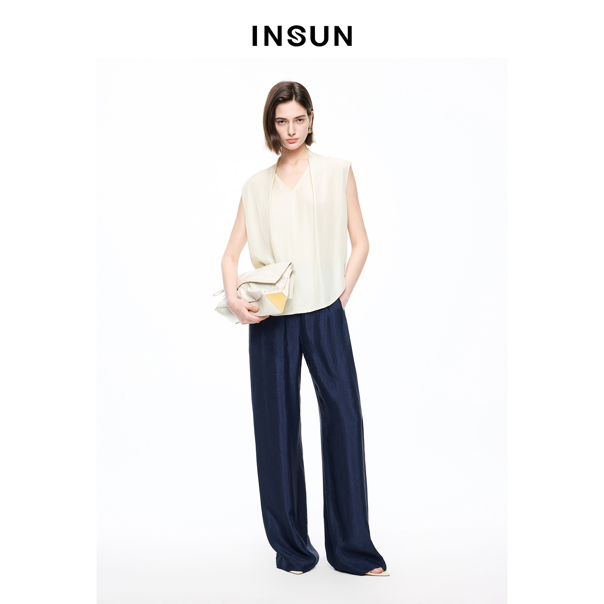 INSUN恩裳专选2026夏季V领连肩袖易打理显瘦100%醋纤背心9C66204010