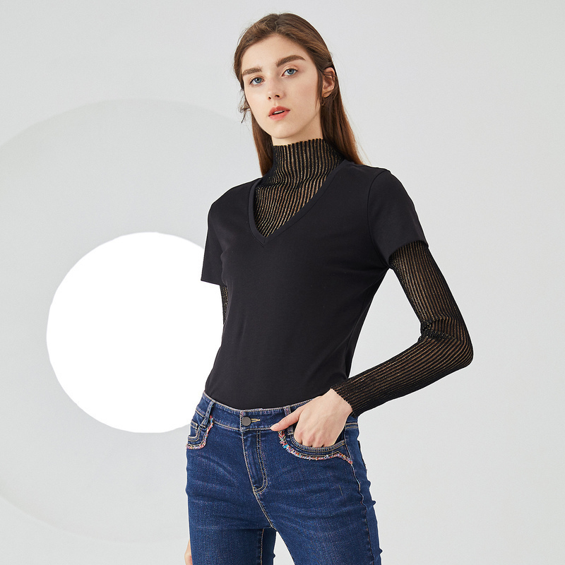 (已下架转渠道销售,勿拍)2019夏季v领短袖弹力修身短款时尚简约休闲纯棉T恤女